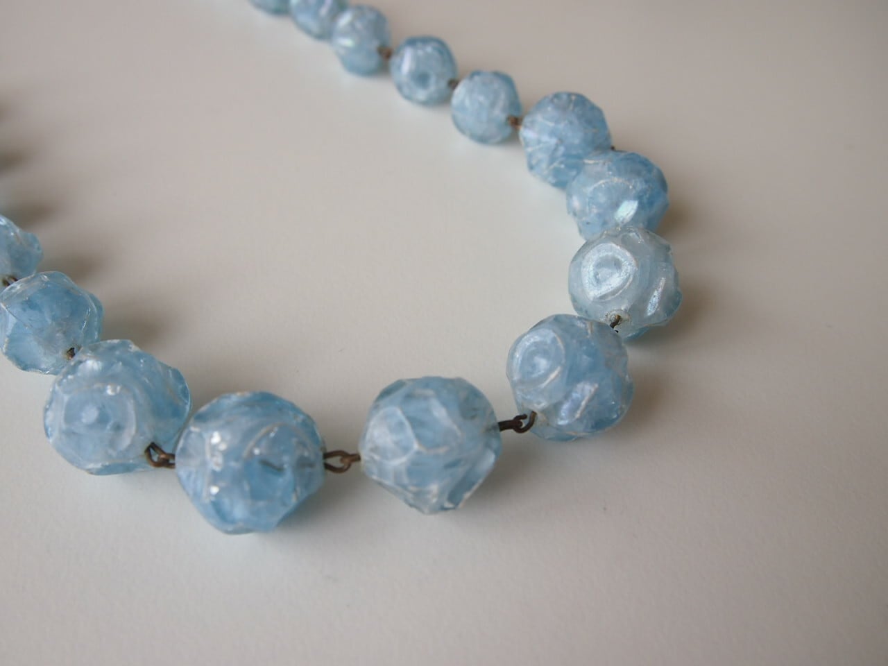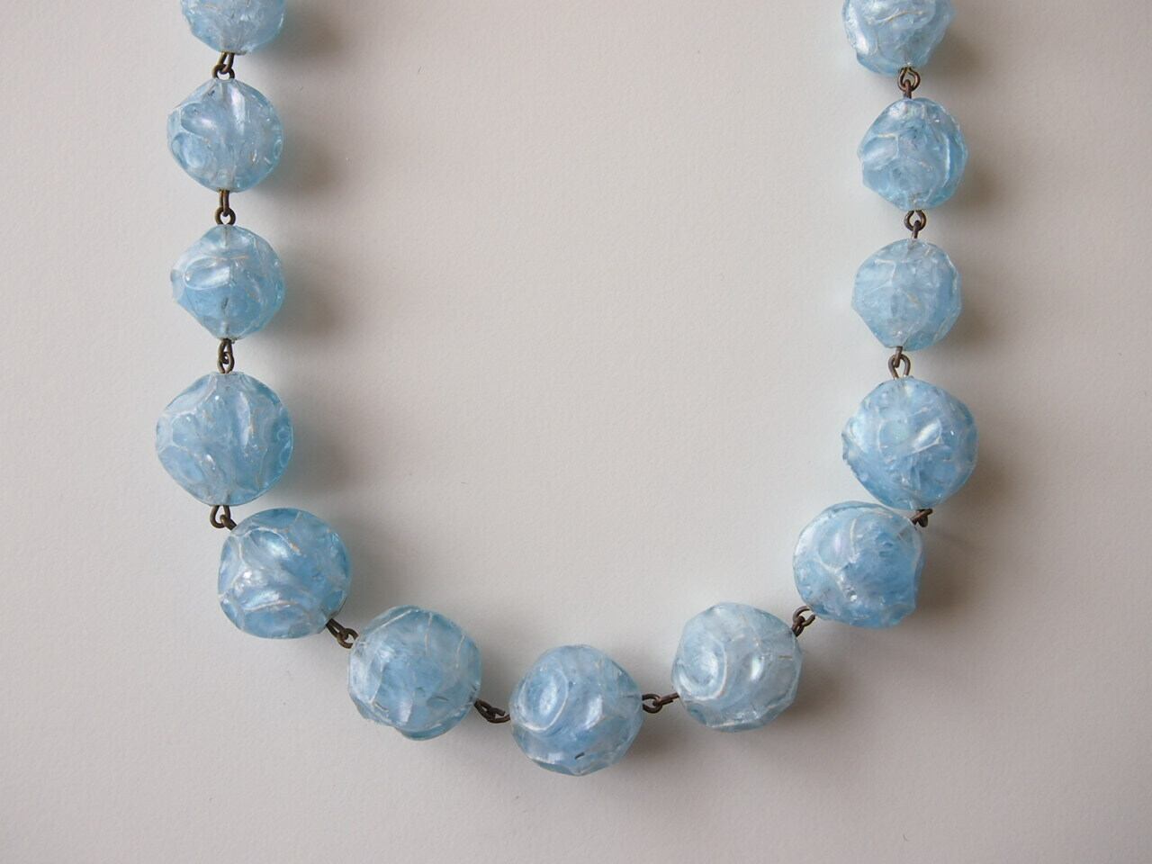 半透明のくすんだビーズがヴィンテージ感を増し、