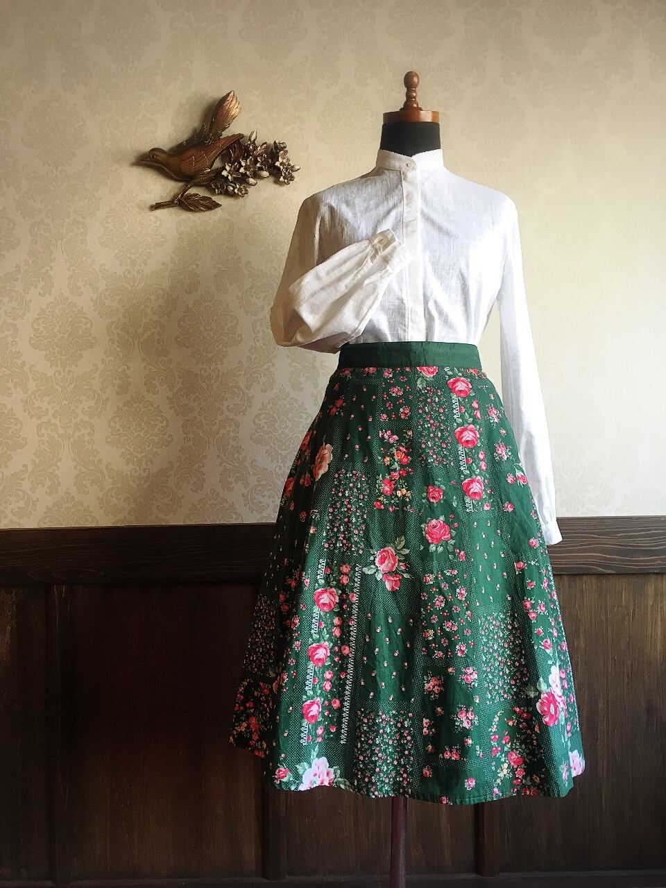 モスグリーン レトロローズ スカート