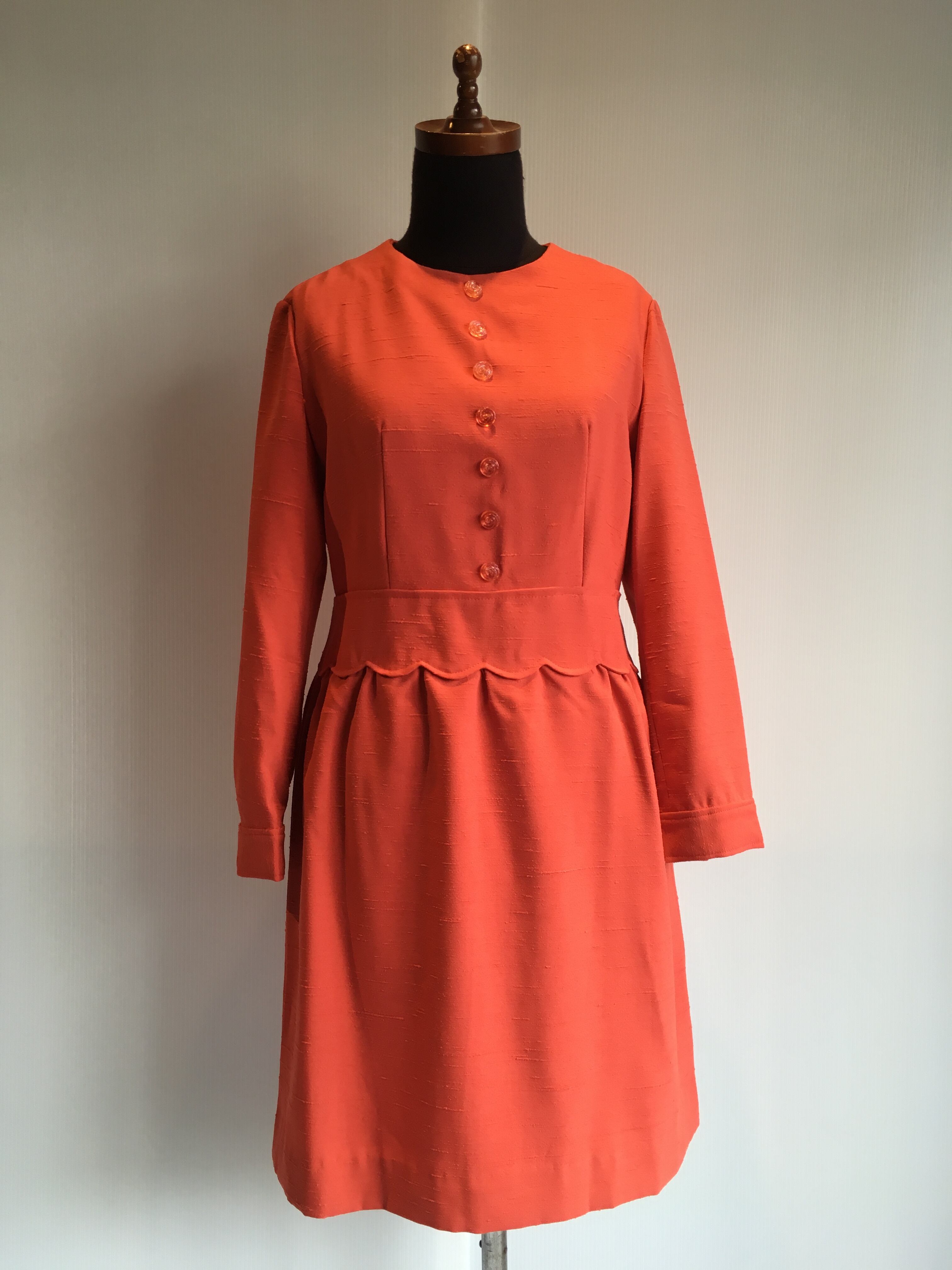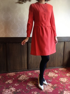 レトロなコーラル色、ウエスト部分のスカラップデザインが、とても可愛いです。