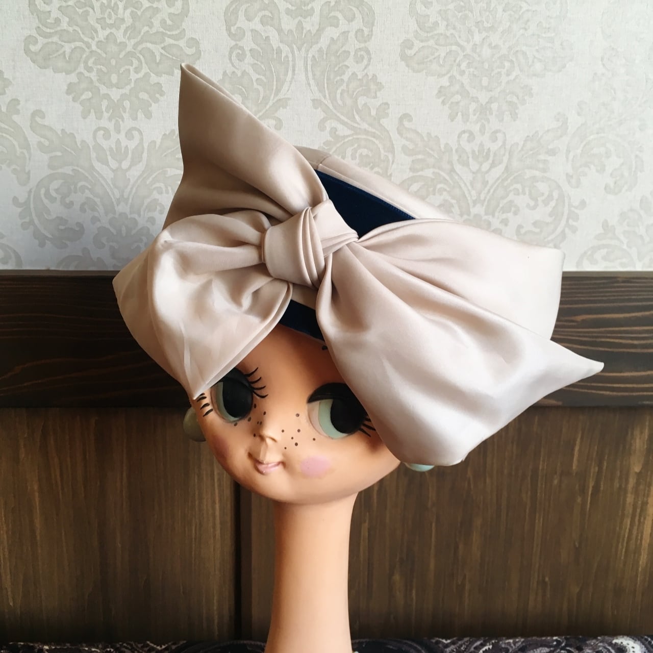 大きなリボンが個性的な、トーク帽。