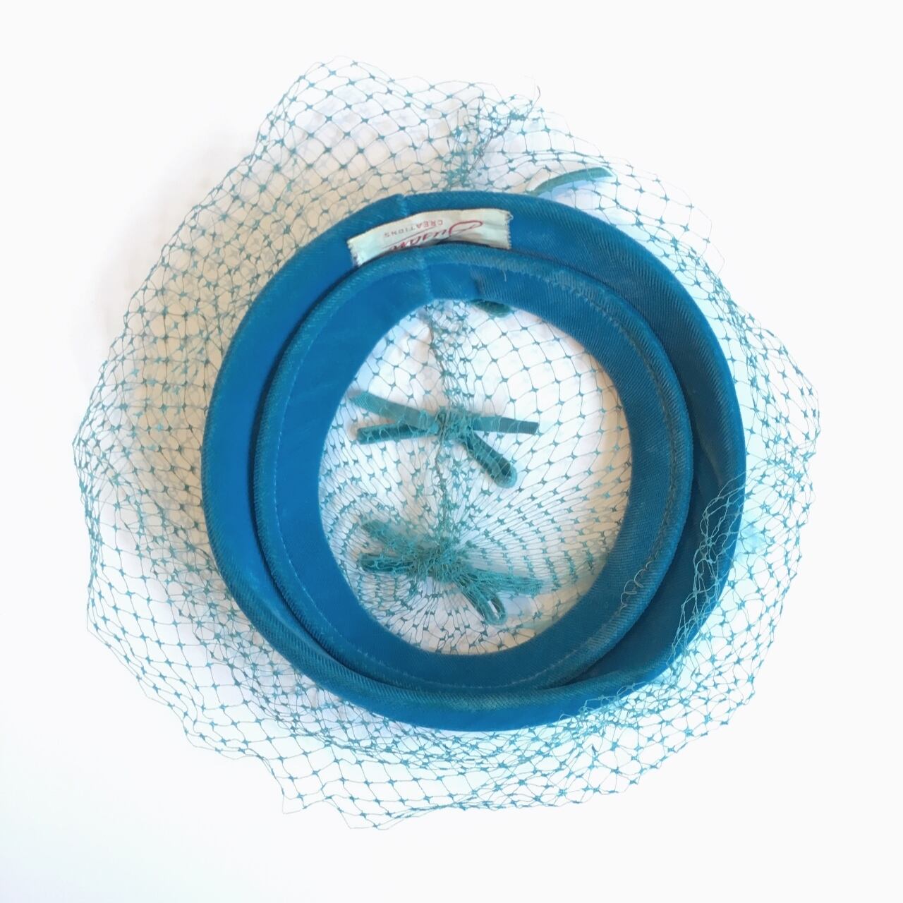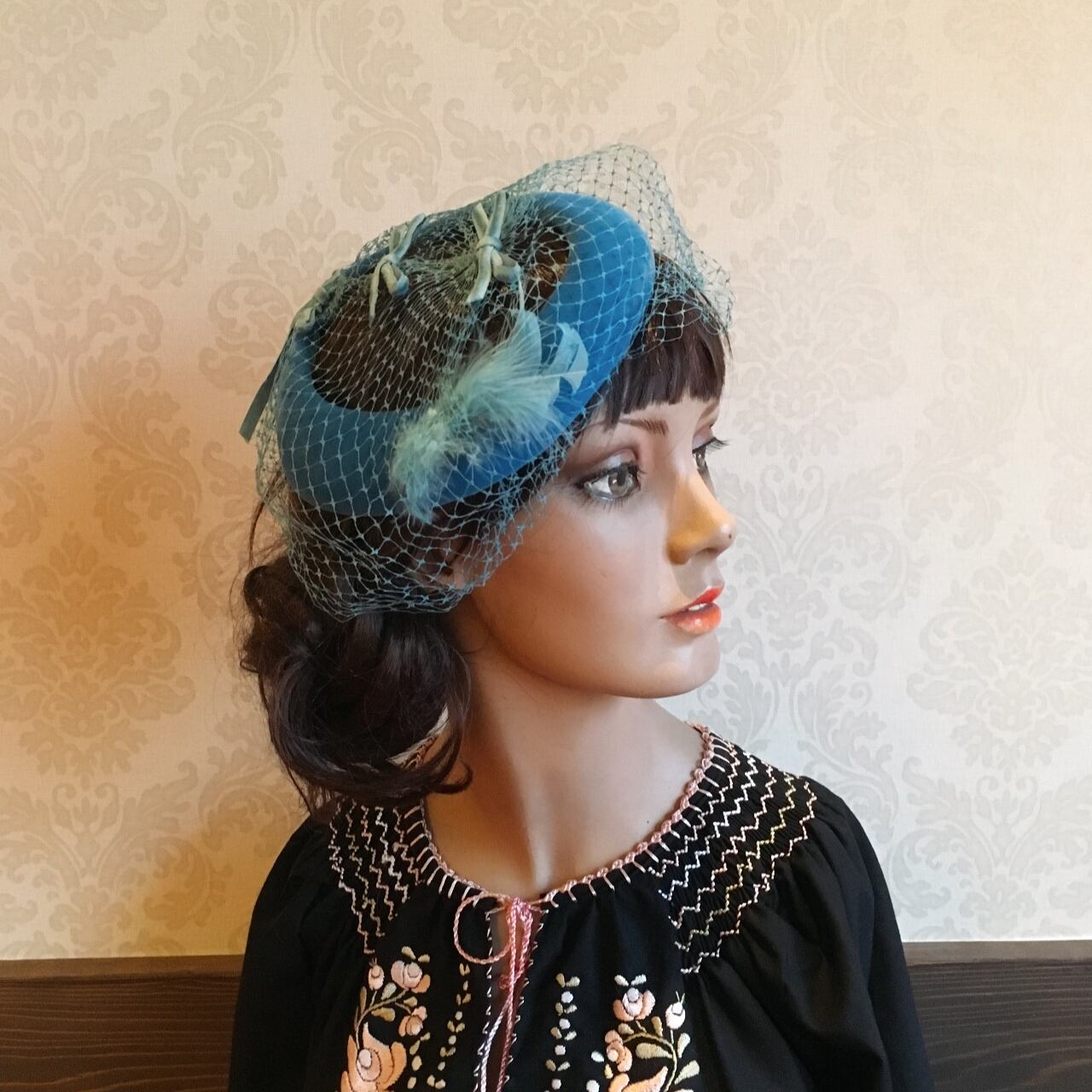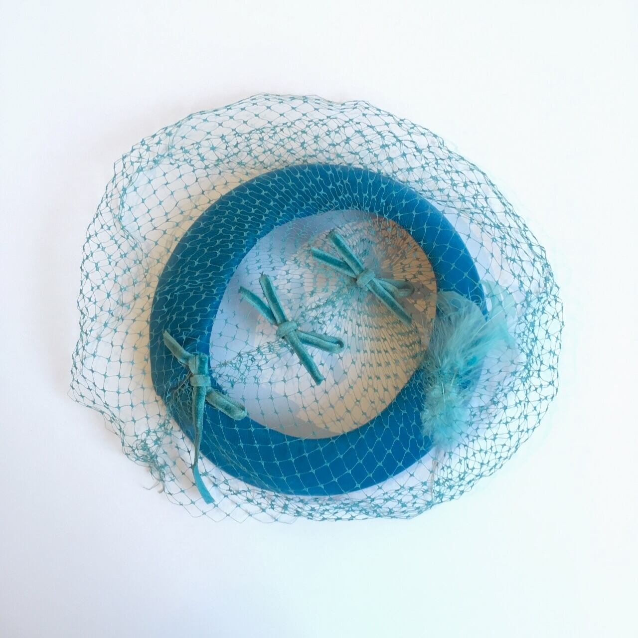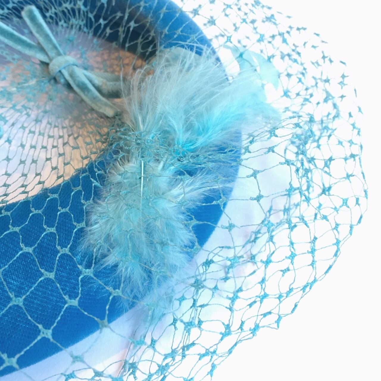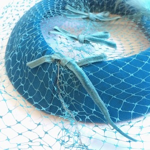 珍しい、水色のベルベット地に、チュールとリボン、アクセントにはフェザーが♪