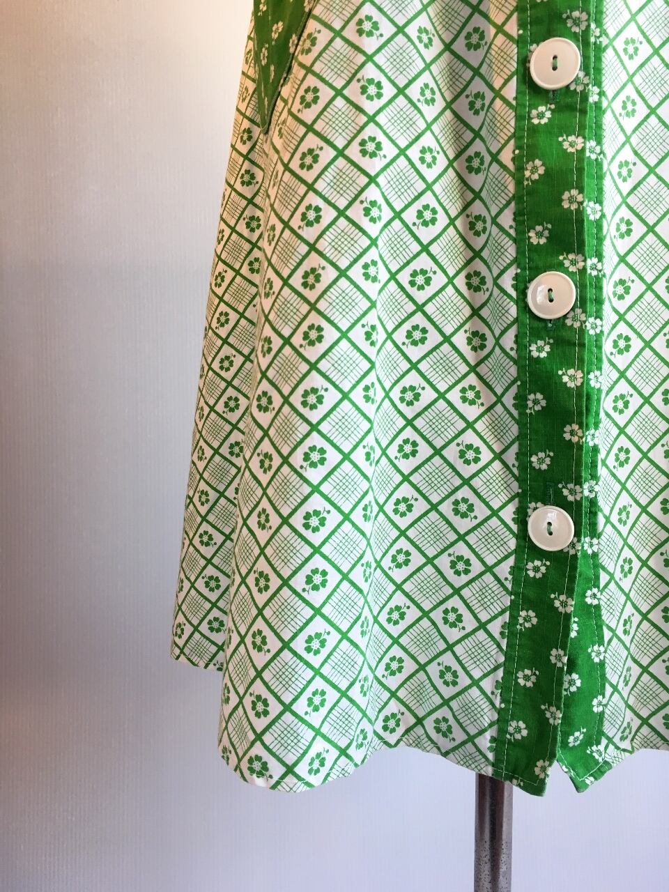 グリーンのレトロフラワー×ダイヤ×チェックがさりげなく可愛いです。