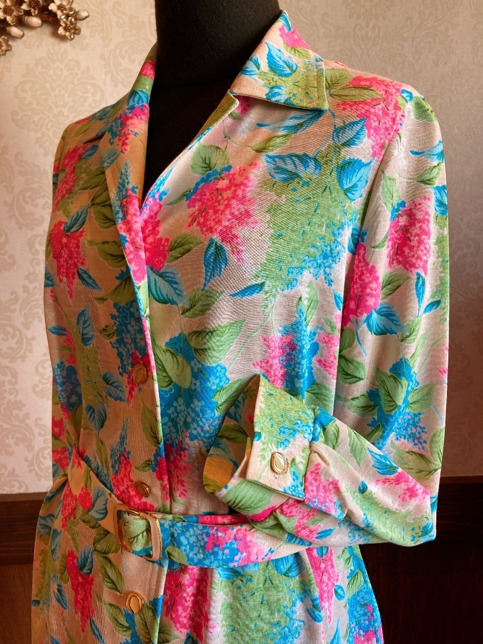 素材:ポリエステル85%、麻15%/前ボタン/共布バックルベルト付き