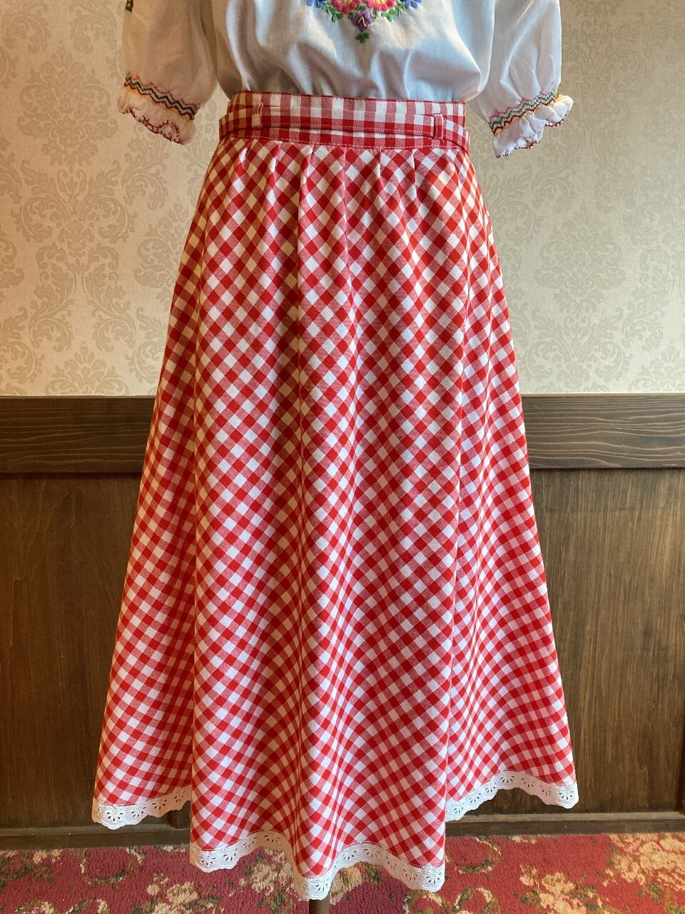 レッド チェックスカート
