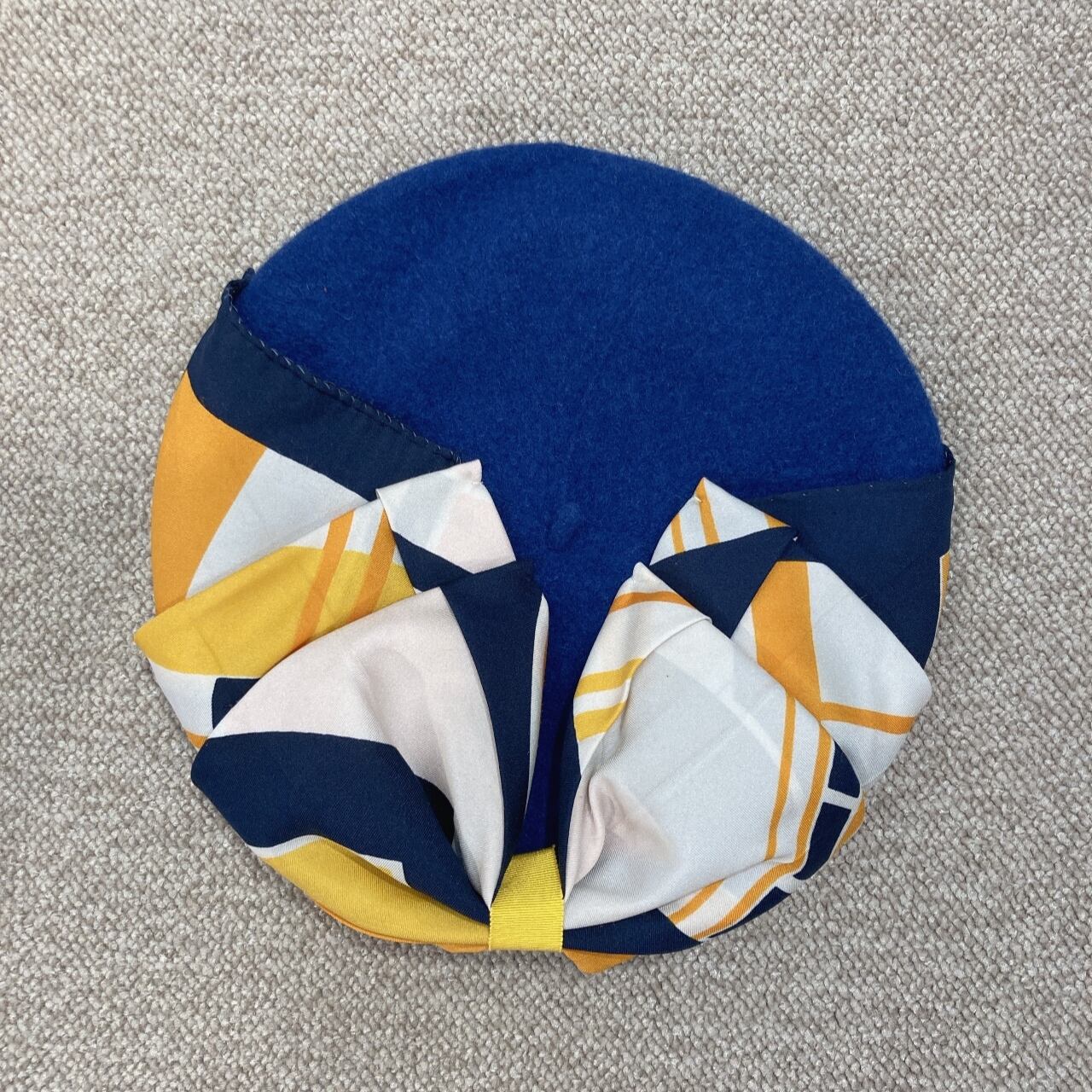 ネイビー×イエロー リボンベレー帽 モアオリジナル