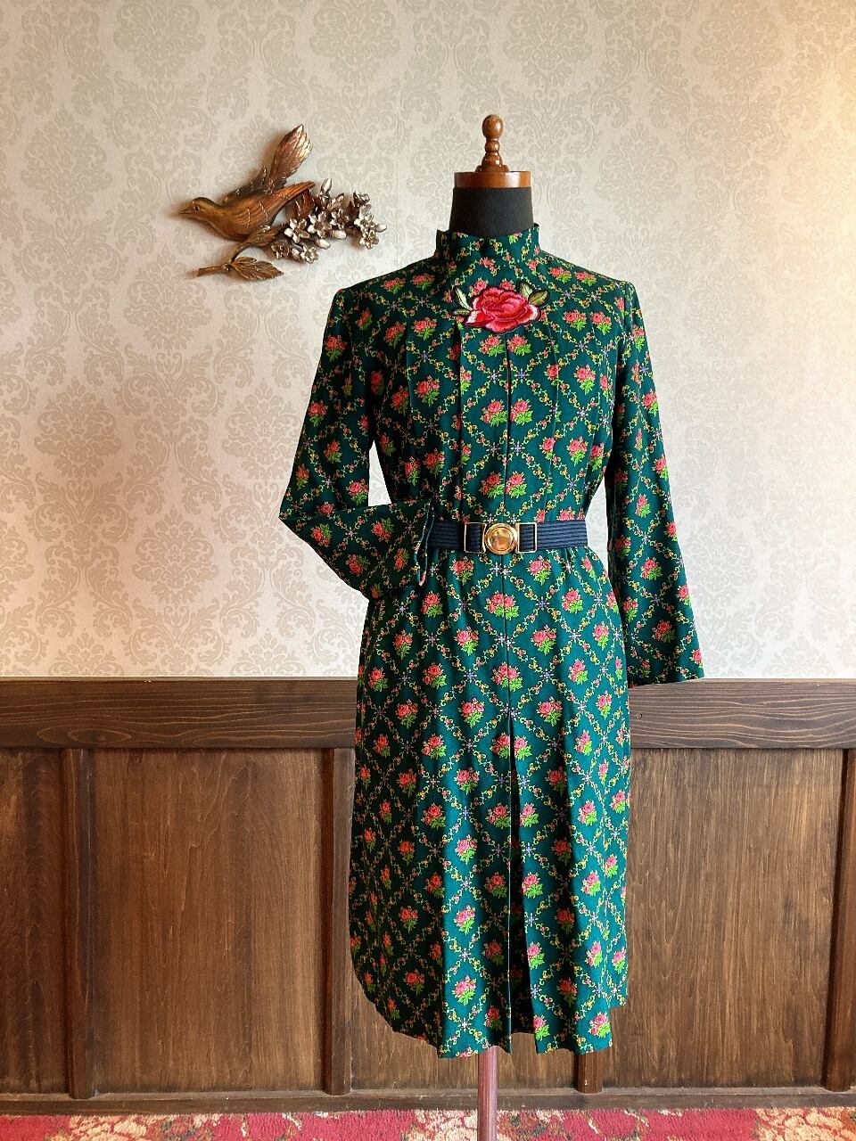 色鮮やかなグリーンに、薔薇の刺繍が可愛いです。