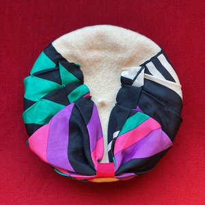 ヨーロッパVINTAGEのベレー帽とスカーフを使って制作しています。