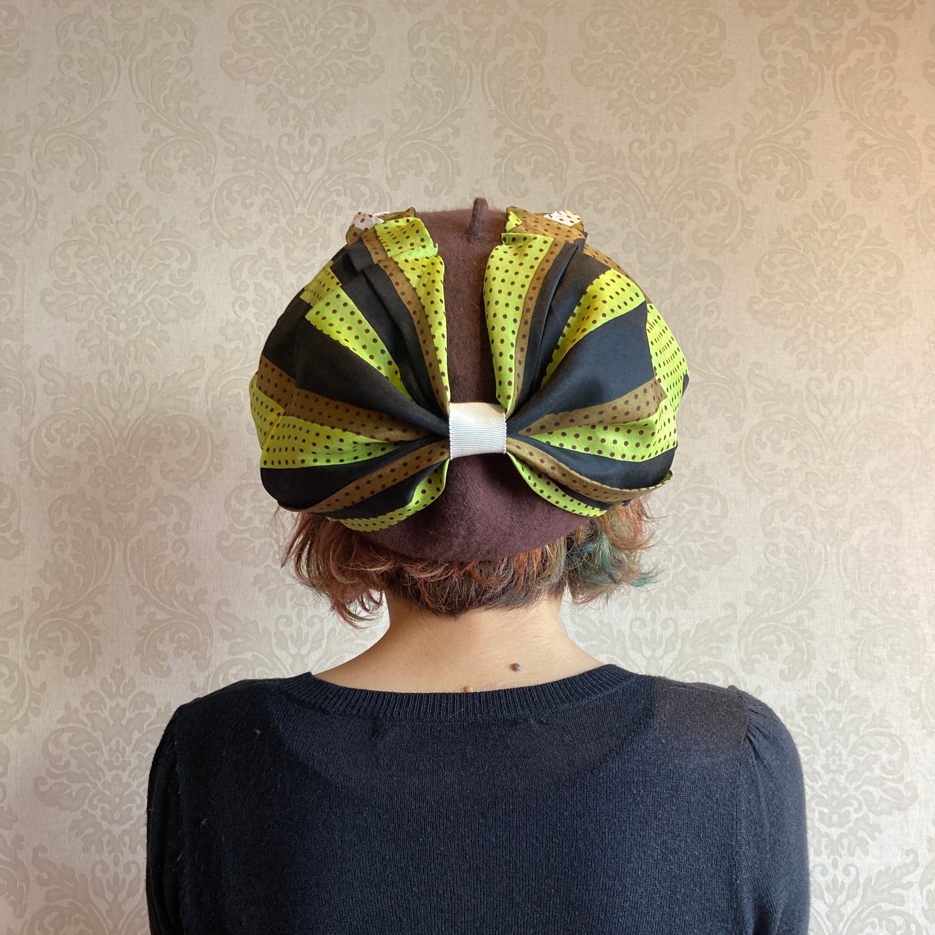 ヨーロッパVINTAGEのベレー帽とスカーフを使って制作しています。